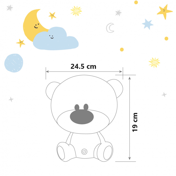Plavi meda – noćna dečija lampa, idealan poklon za vaše najmlađe, za vašu porodicu ili prijatelje. Svetlo snage 2.5W se može aktivirati dodirom i ima tri stepena intenziteta svetlosti što omogućava laku upotrebu.