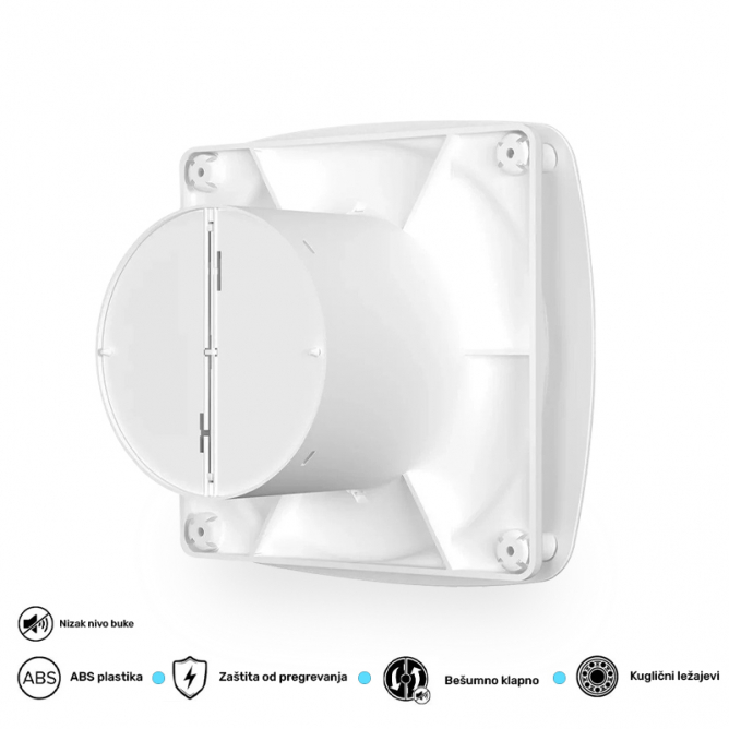Ventilator RIO 4C izrađen u beloj boji koristi se za kontinuiranu ili periodičnu izduvnu ventilaciju kupatila, tuševa, kuhinja i drugih kućnih prostorija. To je kombinacija modernog stilskog dizajna i inženjeringa koja podiže udobnost u vašem domu na novi nivo. Model je opremljen nepovratnim ventilom koji sprečava prodor neprijatnih mirisa iz okna. Ventilator je napravljen od izdržljive ABS plastike. Motor sa kugličnim ležajevima ne zahteva dodatno održavanje i omogućava ugradnju ventilatora u vertikalni i horizontalni položaj (sa uklonjenim nepovratnim ventilom). Instalacija se vrši pomoću vijaka za samoprezivanje, koji su uključeni u komplet.