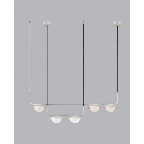 Vesta 268 – LED visilica/luster bele boje, snage 36W. Svetlost neutralno bele boje, isijava kroz kristalizovano staklo, iz 5 abažura, koji su postavljeni duž linije na različitim visinama.