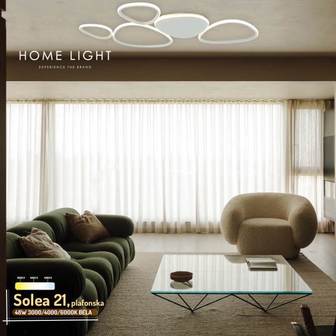 SOLEA 21 plafonjera snage 48W nudi visoku efikasnost i podešavanje, izbor boje svetla. Idealna je za svetleće plafone u prostranim prostorijama poput hodnika, trpezarija i dnevnih soba, sa modernim i minimalističkim dizajnom.