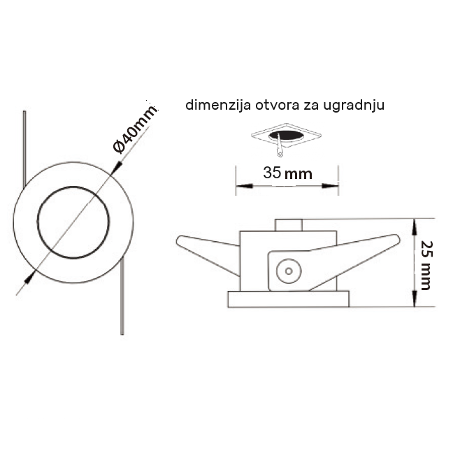 Ugradna LED rozetna crne boje, snage 3w i sa prirodno belom bojom svetla.