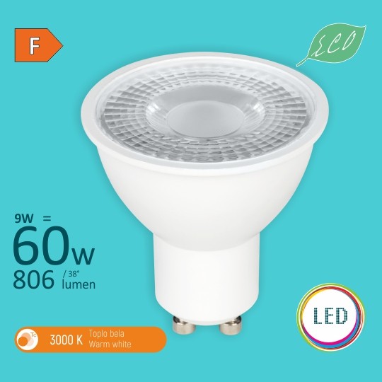 - Ekvivalent (LED-Inkandes.): 9W⇔60W