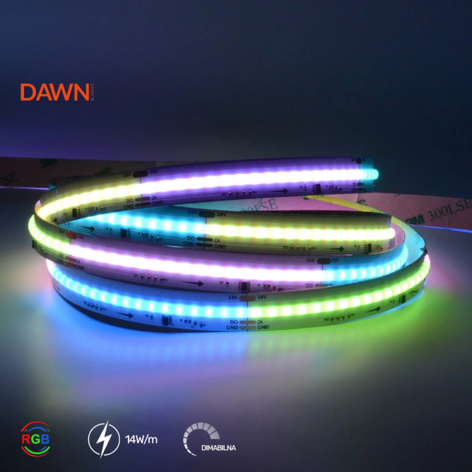 RGB SPI LED traka 24V 14W/m koristi SPI tehnologiju za individualnu kontrolu svake LED diode, što omogućava prilagođavanje boja i svetlosnih efekata u realnom vremenu. Za razliku od običnih LED traka koje ne omogućavaju promenu boja svakog segmenta.