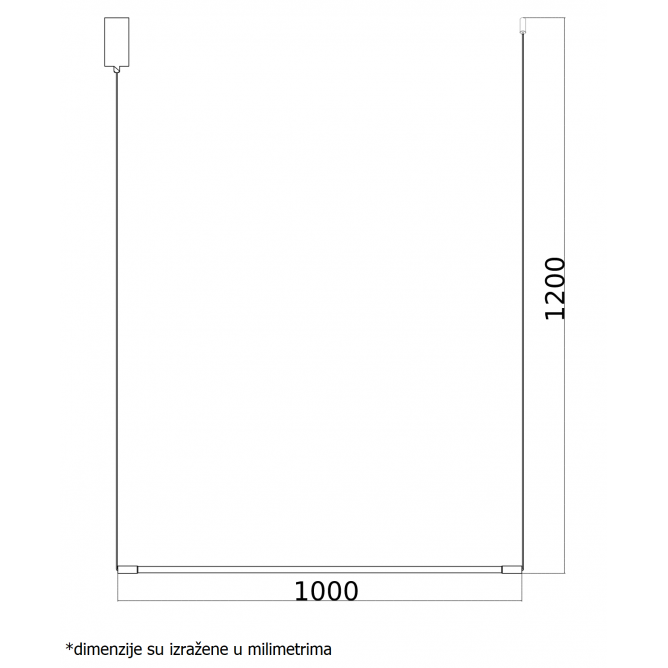 LED visilica savremenog izgleda, čistog i pravilnog geometrijskog oblika, nalik na pravougaonik. Emituje toplo belu svetlost, snage 14w i rasvetno telo je 1 metar dužine.