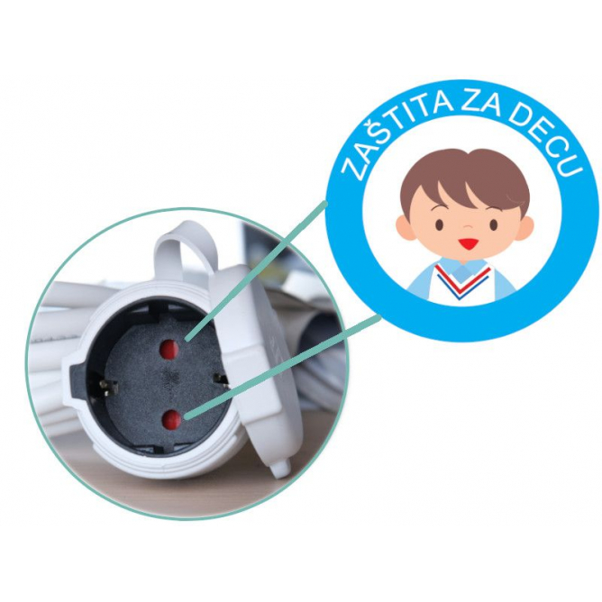 Jednostruka priključnica i utikač pod uglom omogućavaju praktično povezivanje čak i na teško dostupnim mestima. Proizvod je domaće proizvodnje i namenjen dugotrajnoj i sigurnoj upotrebi.