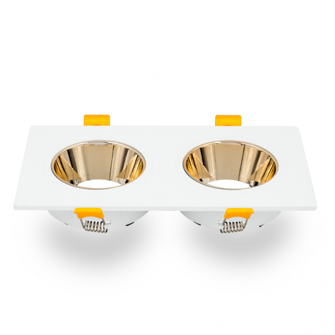 - Ugradna rozetna (JM-1011) modernog dizajna i izgleda, u boji bela/zlato, pravougaonog oblika. Dolazi u kompletu sa 2 sijalična grla, tipa GU10.