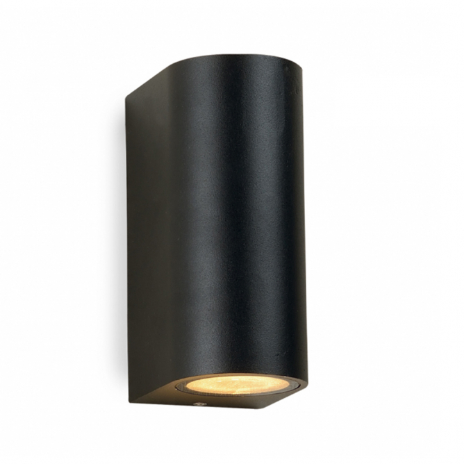 Spoljna svetiljka, crne boje, sa IP65 zaštitom. Svetlost emituje u dva smera (gore i dole) iz 2 sijalična grla, tip GU10.